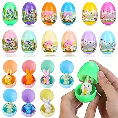 Uova di Pasqua pre-riempite con coniglietti all'interno, perfette per bambini, bambine e ragazzi, caccia alle uova di Pasqua, riempitivi per cestini pasquali, bomboniere, regali