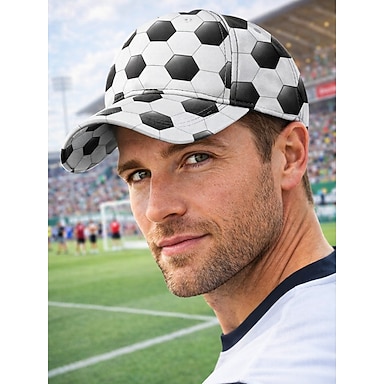 Cappellino da baseball unisex in poliestere con stampa a tema calcistico, regolabile, ideale per allenamenti, tifo, abbigliamento casual quotidiano e partite.