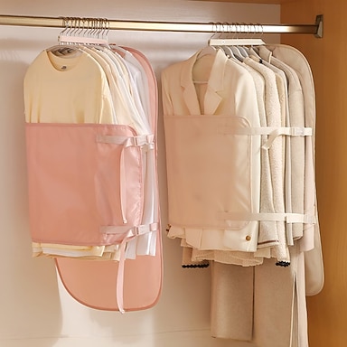 2 grucce salvaspazio a compressione con bottoni, in grado di contenere fino a 30 capi di abbigliamento, ideali per organizzare il guardaroba stagionale a casa, un regalo di Capodanno imperdibile.