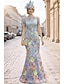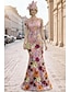 Linea ad A Sirena Tromba Lunghezza al pavimento Abito da Sera Abito da ballo con sopragonna Abito formale Elegante Manica 3/4 Girocollo Festa in giardino Matrimonio Raso Elasticizzato con Fiori 3D