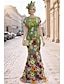 Abito in pizzo ricamato floreale da sirena Abito elegante da sposa Ospite di matrimonio Abito alla caviglia a manica corta con scollo rotondo