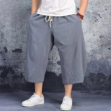 Per uomo Pantaloncini di lino Pantaloncini estivi Pantaloni modello Capri Tasche A cordoncino Vita elastica Liscio Comfort Traspirante Polpaccio Informale Per eventi Per uscire Moda Classico Nero