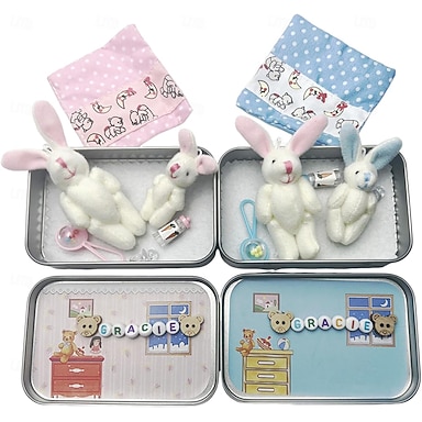 coniglietto pasquale, peluche pasquale, mamma e cuccioli di coniglietti in scatola tascabile, gioco di ruolo, regalo per fratelli, regalo di Pasqua, mini peluche a forma di casa in scatola di latta,