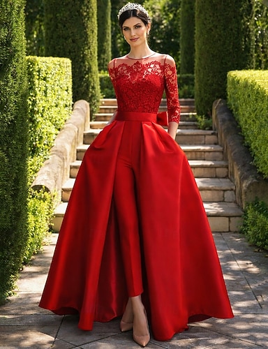 Tuta Completo Pantalone Lunghezza al pavimento Perline ricamate Abito Formale Abito da madre della sposa Abito da Sera Abito da ballo con sopragonna Abito formale Elegante Minimalista Casual Manica