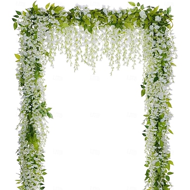 Ghirlanda di fiori artificiali di glicine, 200 cm/79", vite di glicine artificiale in seta, fiori pendenti per casa, giardino, esterni, cerimonie, archi nuziali, decorazioni floreali.
