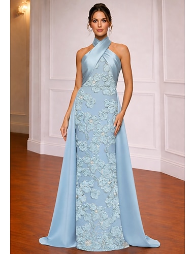 Linea ad A Tubino Colonna Lunghezza al pavimento Abito da Sera Abito da ballo con sopragonna Elegante Scintillante Floreale Senza Maniche All'americana Festa serale Matrimonio Raso Elasticizzato con