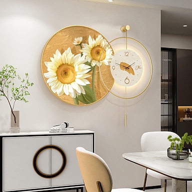 applique da parete con orologio 60/70 cm appeso a parete girasole circondato da api su orologi vintage decorazione da parete per casa, ufficio, classe