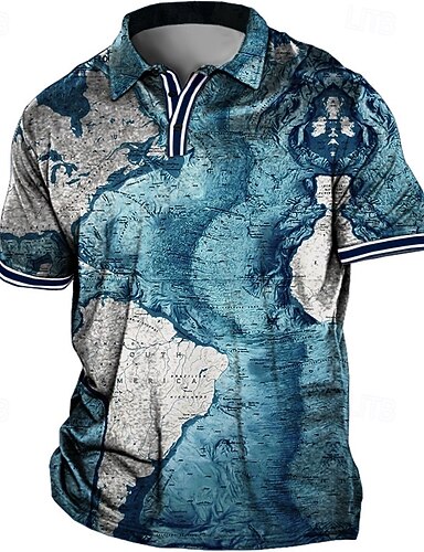 Per uomo Plus Size POLO Grande e alto Mappa Collo ripiegabile Stampa Manica corta Primavera estate Sportivo Di tendenza Streetwear Originale Esterno Strada Top