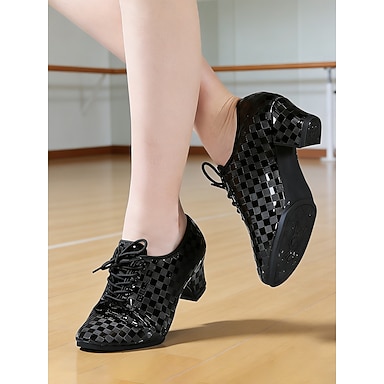 scarpe da ballo professionali da donna in tessuto nero con lacci, tacco basso e blocco, da sala da ballo &scarpe da allenamento latino per l'allenamento in studio