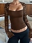 Per donna Blusa Top in pizzo Pizzo Patchwork Semplice Elegante Sexy Manica Lunga Collo quadrato Top Regolari Ferie Uscire Nero Bianco Vino Marrone Estate Primavera
