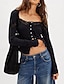 Per donna Blusa Top in pizzo Patchwork Bottoni Semplice Elegante Moderno Casual Manica Lunga Collo quadrato Top Regolari Quotidiano Ferie Uscire Blu Nero Bianco Verde Estate Primavera Autunno
