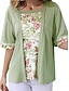 Per donna Blusa Patchwork Floreale Elegante Vacanza Casual Mezza Manica Collo quadrato Top Regolari Quotidiano Azzurro cielo Viola Verde Cachi Estate Primavera