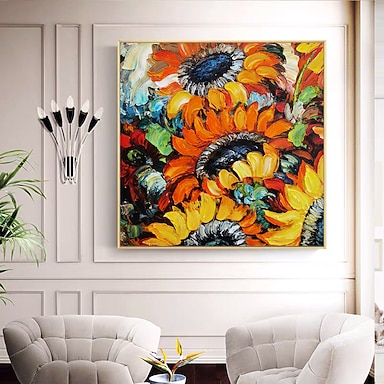 Dipinto a olio fatto a mano su tela, decorazione da parete, moderno, astratto, fiori, girasole, per la decorazione della casa, dipinto appeso su telaio teso/tela arrotolata (senza cornice)