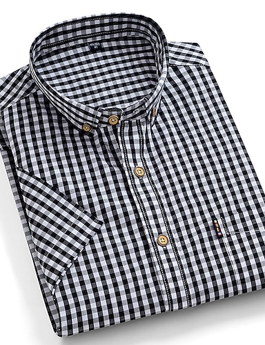 Per uomo Camicie Camicia non stirabile A quadri / A righe / Chevron Matrimonio Ufficio e carriera Nero Bianco Vino Blu marino scuro Manica corta Colletto Primavera estate Abbigliamento Croce