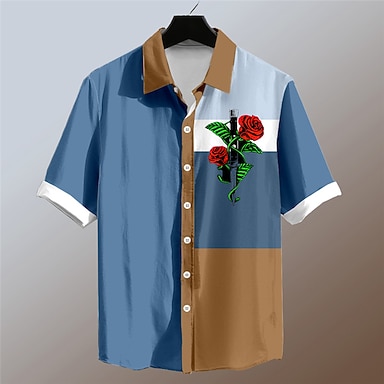 camicia hawaiana stampata in 3d a quadri floreali con rose romantiche per San Valentino, resort estivo, a maniche corte, per vacanze al mare dalla s alla 3xl