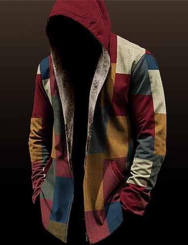 Per uomo Blocco di colori Quadri Cappotto Invernale Giacca in Pile Cappotto Calore Termico Vintage Abbigliamento quotidiano Uscire Tasca Stampato Autunno & Inverno Con Cappuccio Manica Lunga Nero