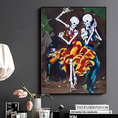 pittura a olio fatta a mano di halloween teschio di halloween dipinti per le vacanze arte della parete astratta fantasma danza intaglio decorazione della casa arredamento tela arrotolata senza