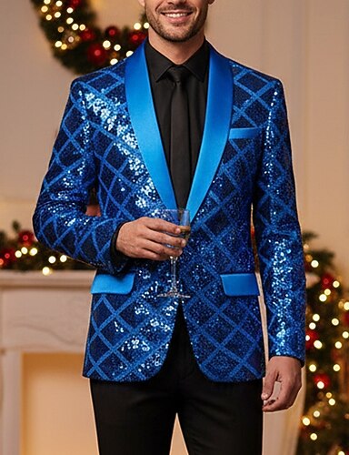 Per uomo Giacca blazer Collo a scialle Festa A quadri Blazer Nero Argento Rosa Vestibilità aderente Monopetto Un Bottone