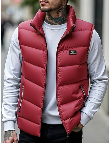Per uomo Gilet imbottito Gilet con cappuccio Imbottito Gilet Gilet trapuntato Giornaliero Appuntamento Da mare Di tendenza Informale Autunno inverno Tasche Poliestere Tenere al caldo Comodo Pop art