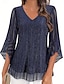 Blusa Donna Scollatura a V Maniche a Rete Sovrapposte Ombre Grafica Astratta Bohemia Vintage Quotidiana Maniche Lunghezza 3/4 Maniche Regolari Quotidiane Vacanze Stampa Rosa Blu Verde Estate