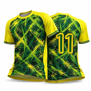 Per uomo Geometrico Astratto Lettere & Numeri Brasile Calcio estivo Partita globale Top da corsa Maglia da corsa Estate Manica Corta UPF 50 Asciugatura Rapida Traspirante Palestra Track Fitness Verde