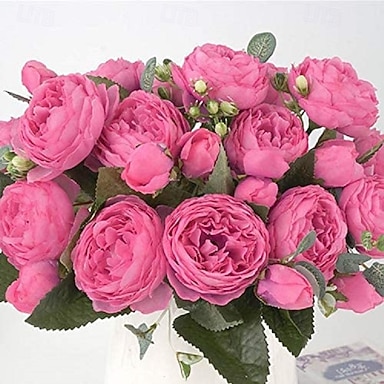 1 bouquet di rose persiane artificiali, rose di seta a 5 teste con 9 fiori, composizione floreale finta per matrimoni, feste, decorazioni per la casa