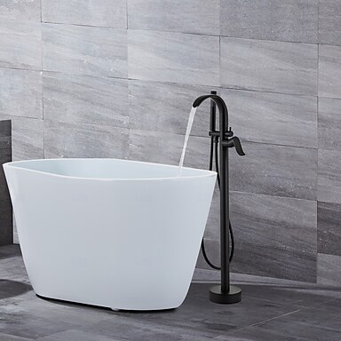 Rubinetto per vasca da bagno - finiture minimaliste verniciate, miscelatore per vasca e doccia con valvola in ceramica a pavimento, rubinetto monocomando a cascata per vasca freestanding con doccetta e deviatore