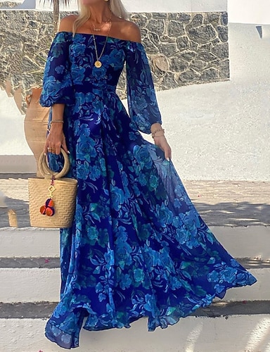 Per donna Abito Lungo Maxi Abito Abito da Ballo Vestito da Festa Abito da Cocktail Vestito in Chiffon Moda Festa serale Feste Occasione speciale Vestibilità comoda Floreale Manica Lunga Senza Spalle