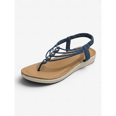sandali bassi da donna in stile bohémien con decorazioni in perline e cinturino elastico, comode scarpe estive per la spiaggia e le uscite casual
