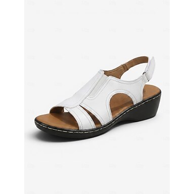 sandali con zeppa bianchi da donna con ritagli – scarpe casual traspiranti con plateau per passeggiate, viaggi, vacanze, feste in giardino e uso quotidiano