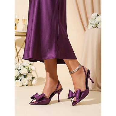 Sandali da donna viola con fiocco e cinturino posteriore e tacco – eleganti scarpe da cerimonia a punta aperta per invitati a matrimoni in giardino &feste estive