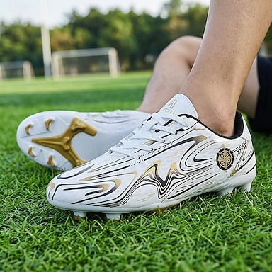 bianco per bambini &tacchetti da calcio neri – scarpe da allenamento da calcio leggere per giovani calciatori, appassionati di calcio, allenamento & gioco