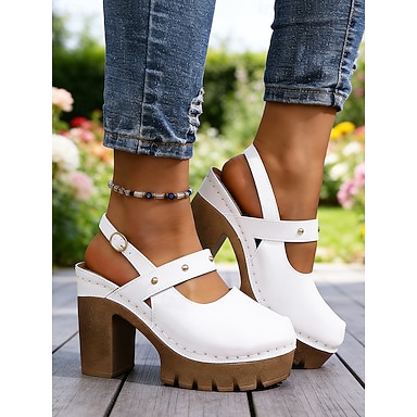 Per donna Casuale Quotidiano Plateau Tacco grosso Punta Tonda Casual Finta Pelle Fibbia Tessuto almond Nero Bianco
