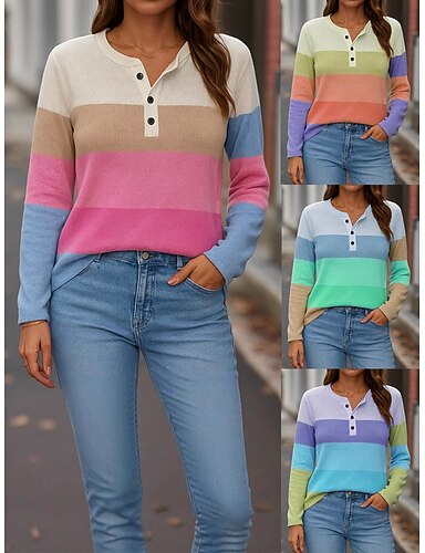 Per donna Blusa Bottoni Stampato A righe Elegante Casual Manica Lunga Girocollo Top Regolari Quotidiano Blu Rosa Arancione Verde Estate Primavera Autunno