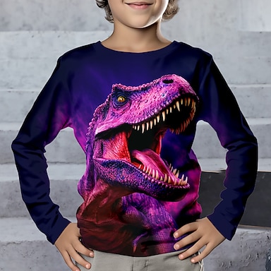 Da ragazzo 3D Dinosauro Set pigiama Manica lunga Stampa 3D Autunno Inverno Attivo Fantastico Giornaliero Bambino 3-12 anni Girocollo Interni Casual Al coperto Standard