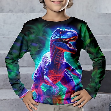 Da ragazzo 3D Dinosauro Camouflage Set felpa e pantaloni della tuta Set Manica lunga Stampa 3D Autunno Inverno Attivo Di tendenza Fantastico Bambino 3-12 anni Girocollo Esterno Da mare Strada Standard