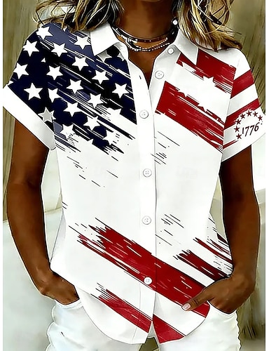 Giorno dell'Indipendenza Americana Per donna Camicia Camicia in raso Camicia button-down Camicia casual Stampato Grafico Bandiera Classico Casual Manica Lunga Colletto a Camicia Top Regolari