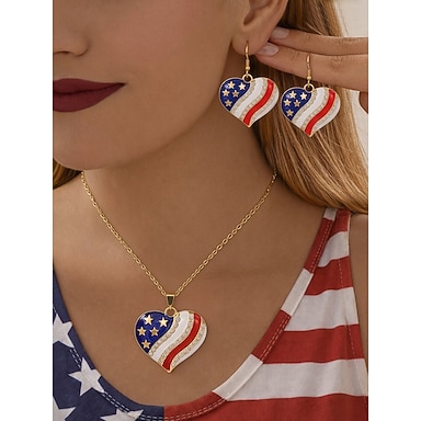 set di collana e orecchini in lega da donna, design a cuore e stella in più stili, gioielli patriottici, perfetti per il 250° anniversario degli Stati Uniti, il giorno dell'indipendenza e l'abbigliamento casual quotidiano