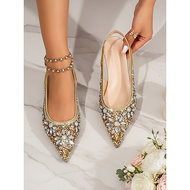 ballerine con cinturino posteriore in cristallo dorato da donna, eleganti scarpe da sposa con punta a punta per matrimoni in città moderne