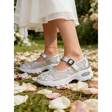 comode scarpe da ginnastica in rete con strass per donna: eleganti scarpe slip-on per invitati a matrimoni, feste, eventi all'aperto e abbigliamento quotidiano