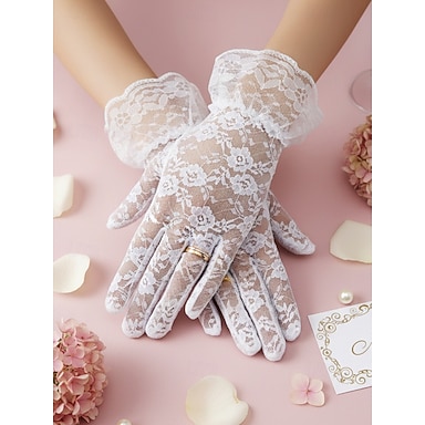 guanti in pizzo da donna, materiale in pizzo di poliestere, disponibili in più colori, perfetti per matrimoni, feste e occasioni speciali