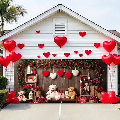 Copertura per porta da garage per San Valentino, stampa piatta 2D di un orso rosso che tiene rose e cuore, muro di rose, scatola regalo bianca con nastro rosso, decorazione perfetta per le feste per