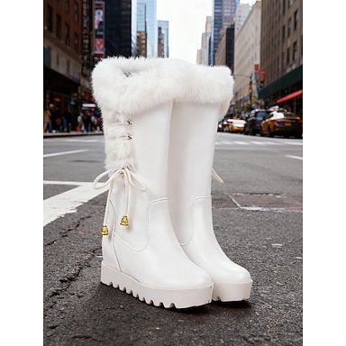 stivali bianchi con zeppa da donna - eleganti con dettagli allacciati, comodi e alla moda per gli outfit invernali