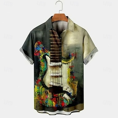Per uomo Maestri del Consiglio Strumento musicale Camicia casual Camicia con Bottoni Manica Corta Casual Regalo Casuale Estate Primavera Collo ripiegato Cardigan con Bottoni Verde