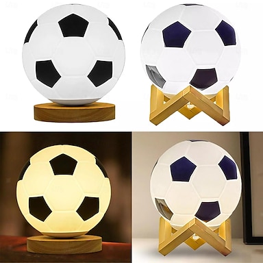 Lampada da tavolo da calcio 3D con base in legno massello, luce notturna da calcio, luce notturna per studio, casa, regalo per bambini, decorazioni