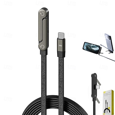 Cavo da USB-C a Type-C da 240 W, testa girevole a 180° con supporto per telefono, cavo di ricarica rapida intrecciato in nylon per MacBook, iPhone 17, 16, 15 Pro Max, Samsung S26 Ultra Plus, iPad Pro,