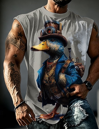 Per uomo Animale Anatra Canottiera Senza Maniche maglietta Stampa 3D Girocollo Camicia Divertente Quotidiano Streetwear Giallo Cachi Grigio Primavera & Estate Abbigliamento S M L XL XXL 3XL
