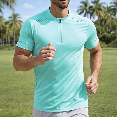 Per uomo Tinta unita T-shirt da corsa Maglia a compressione Maglia da corsa Estate Primavera Zip a un quarto Manica Corta Asciugatura Rapida Compressione Traspirante Allenamento in Palestra Corsa
