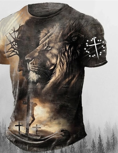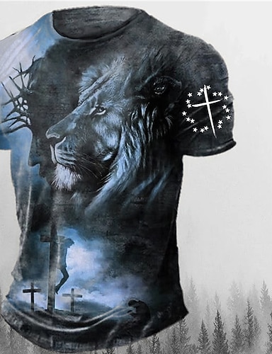 T-shirt con grafica della Croce Biblica da uomo T-shirt a maniche corte maglietta a stampa 3D maglietta colletto rotondo moda vintage casual abbigliamento esterno primavera e estate colore nero