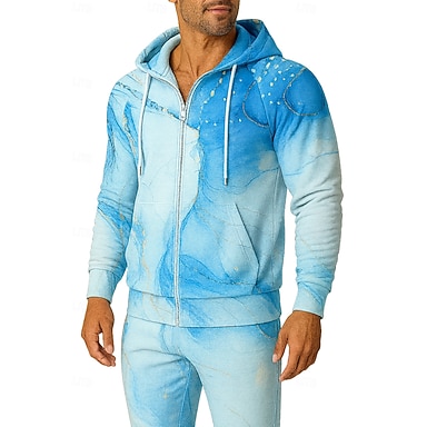 Per uomo Felpa con cappuccio Tuta da Ginnastica Tuta da 2 pezzi Coulisse Con zip Completo Abbigliamento Autunno Inverno Blu Lavoro All'aperto Viaggio Leggero Di tendenza Manica Lunga Sport